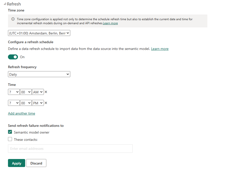 Use Incremental Refresh: For large datasets, configure incremental refresh to update only new or changed data instead of refreshing the entire dataset.
